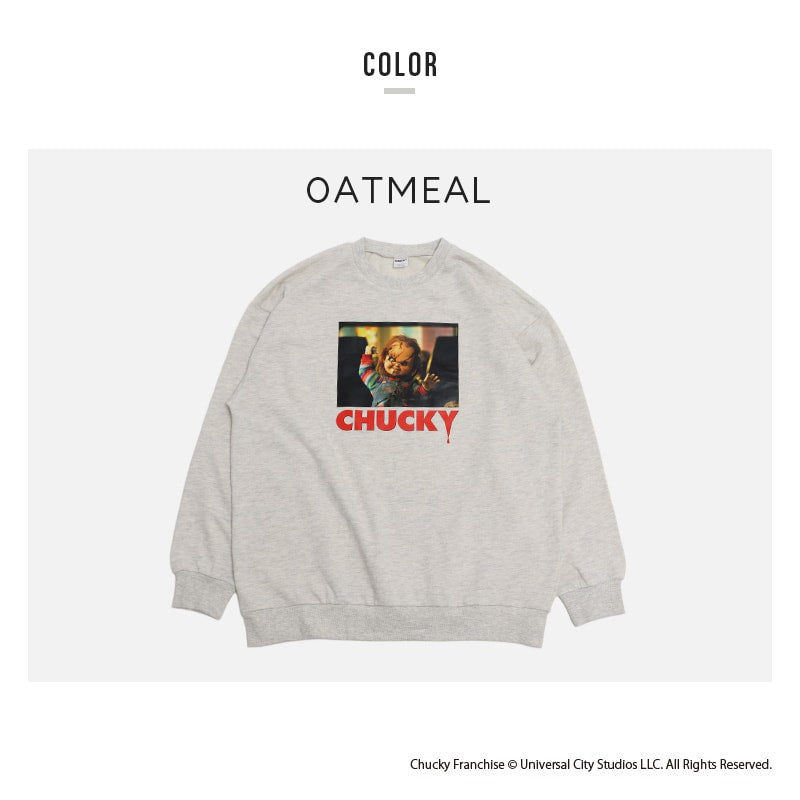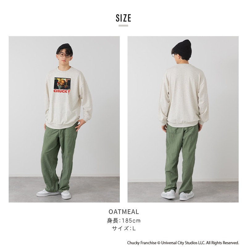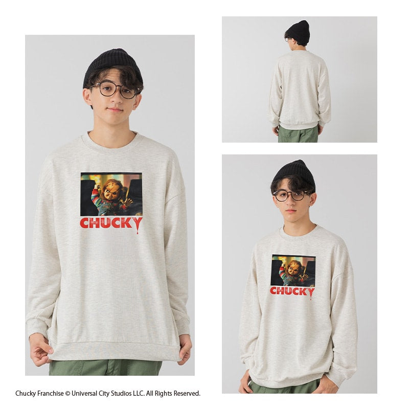 人気アイコン『チャイルド・プレイ』の「チャッキー」がプリントされたオリジナルトレーナー!インパクト抜群のプリントデザインがクールな1枚。トレンド感のあるゆったりとしたシルエットで着こなしやすく、映画ファンにはたまらないアイテムです。