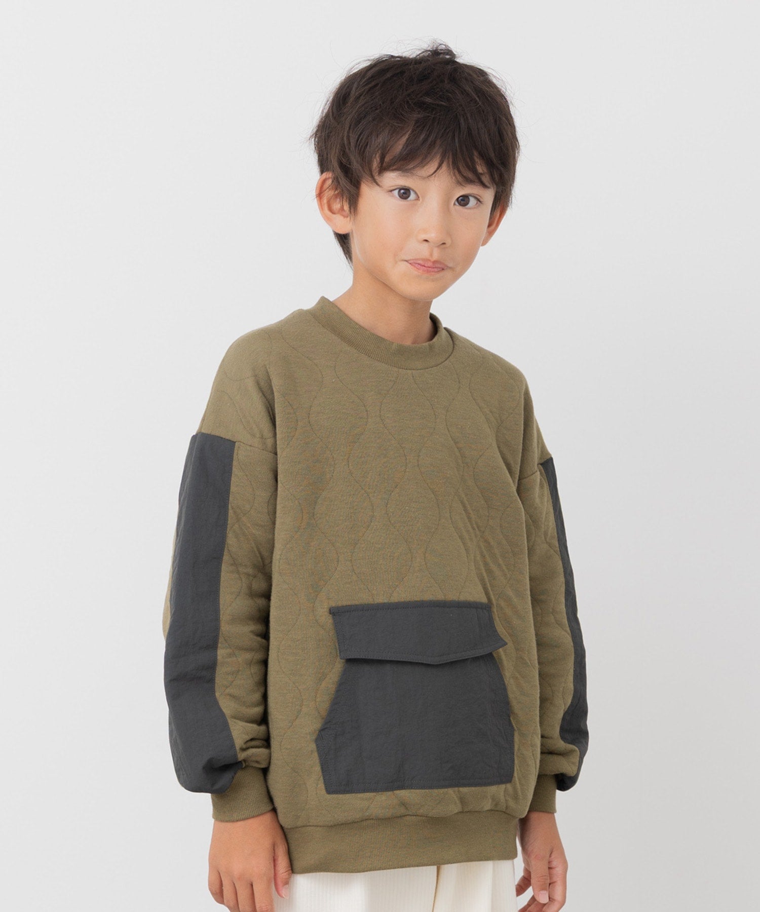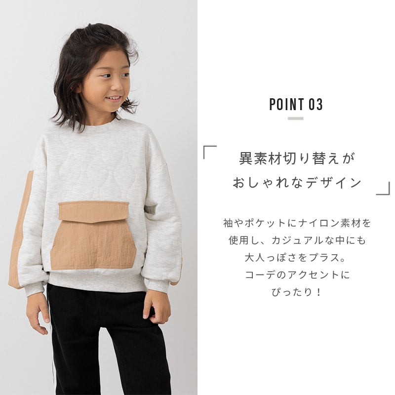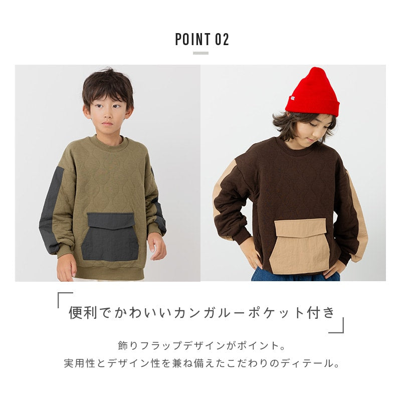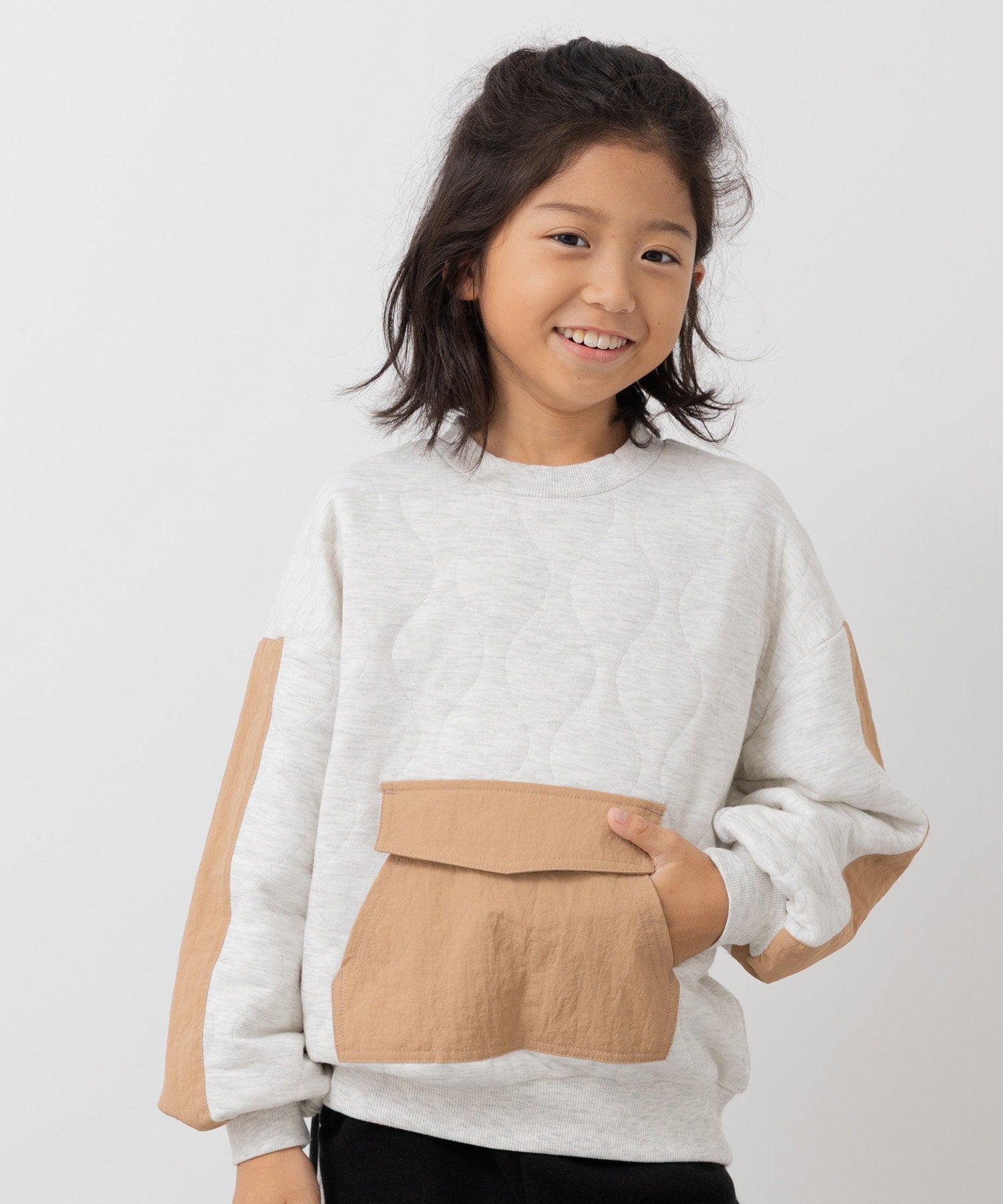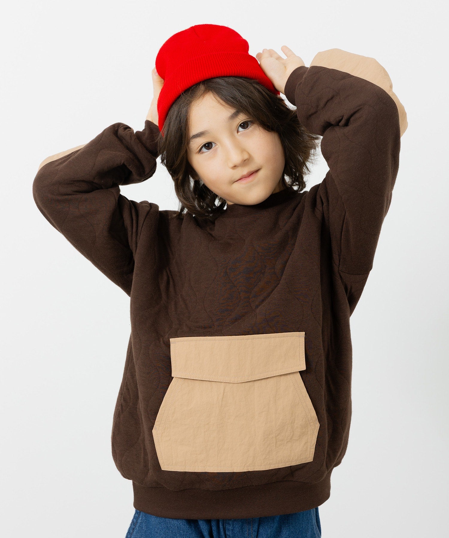 軽くて暖かいニットキルトトレーナー!中綿が挟み込まれていてふっくらとした生地感。飾りフラップ付きのカンガルーポケットや袖の異素材切替がおしゃれな1枚。保温性にも優れていて、ふんわりと優しい着心地です◎