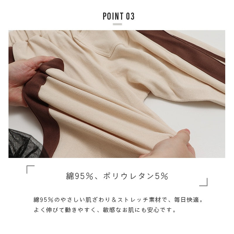 脇には細巾と太巾の2本のラインがスポーティでおしゃれなアクセントに。