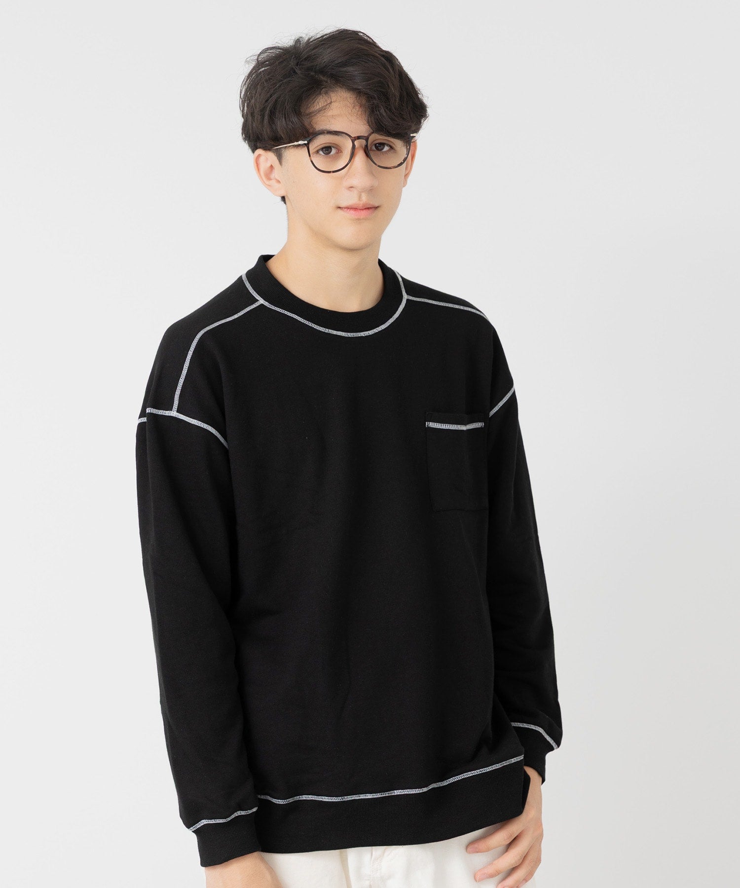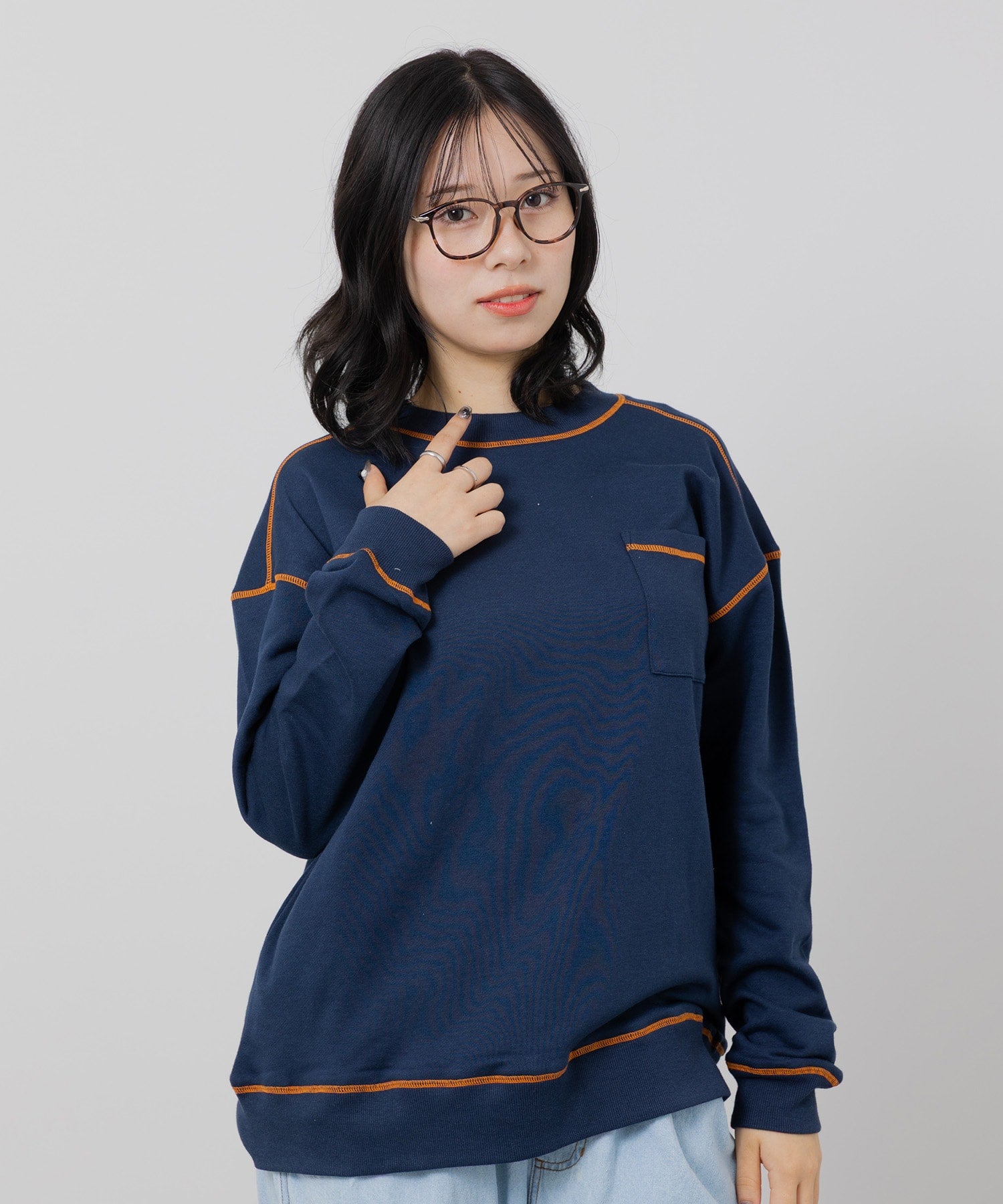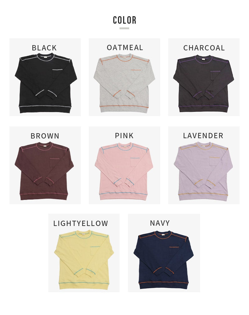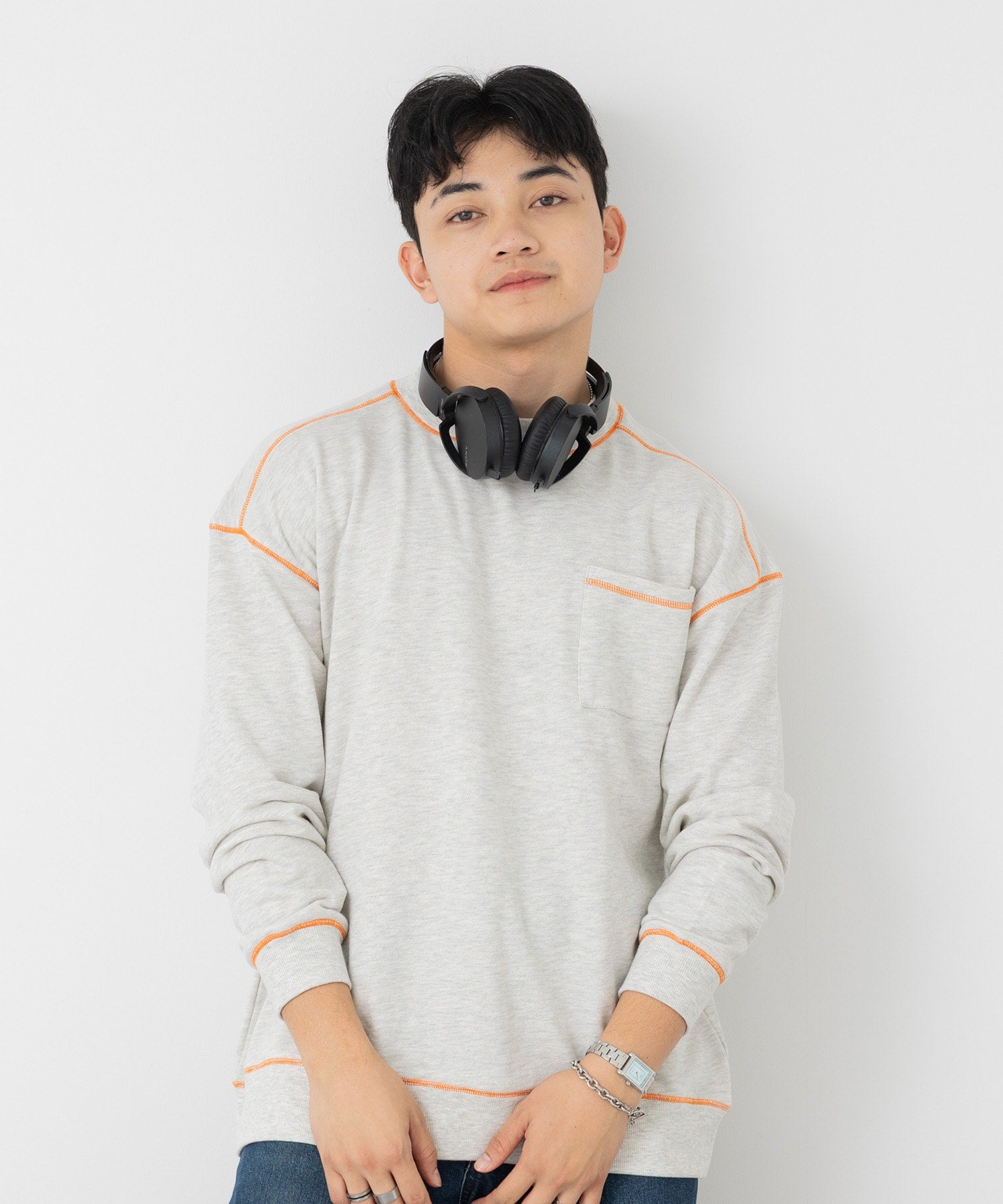 JAM&LINKの定番「配色ステッチシリーズ」の裏毛トレーナー!ステッチがほどよいアクセントになり、着るだけでシンプルなのにひとクセあるオシャレなコーデに仕上がります。ちょうどよい厚さの生地感で、秋口~春先まで長く着まわせるよ。