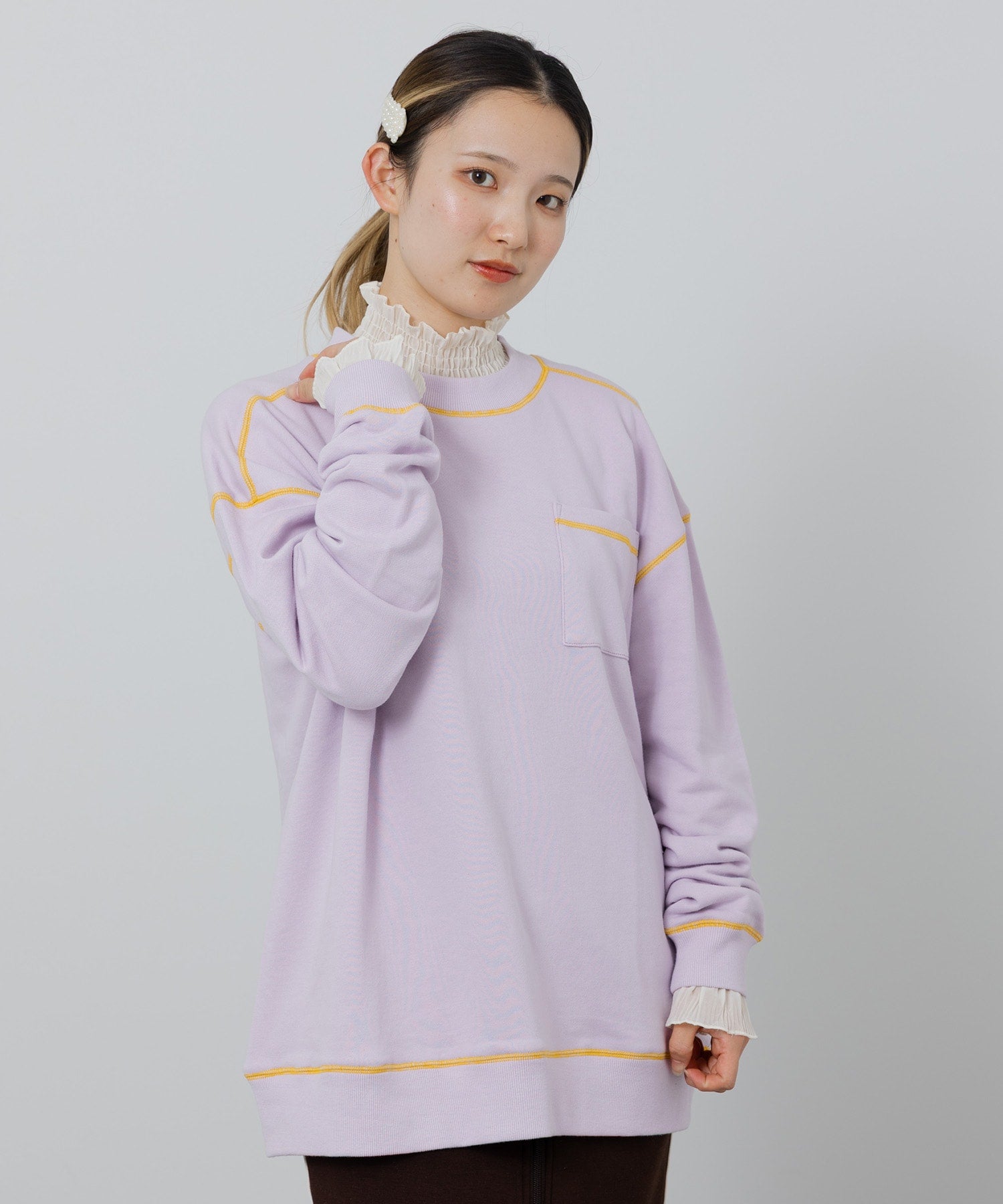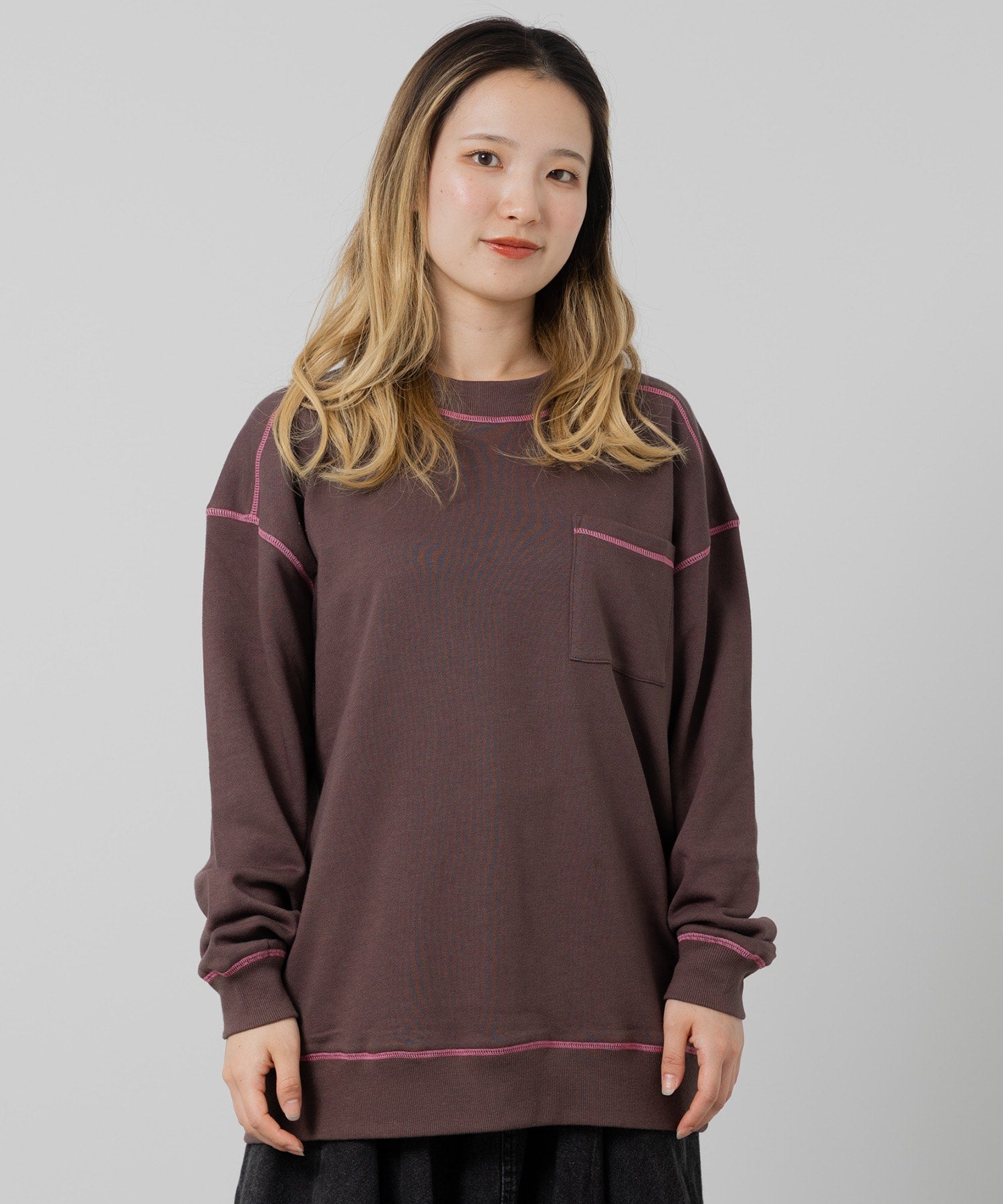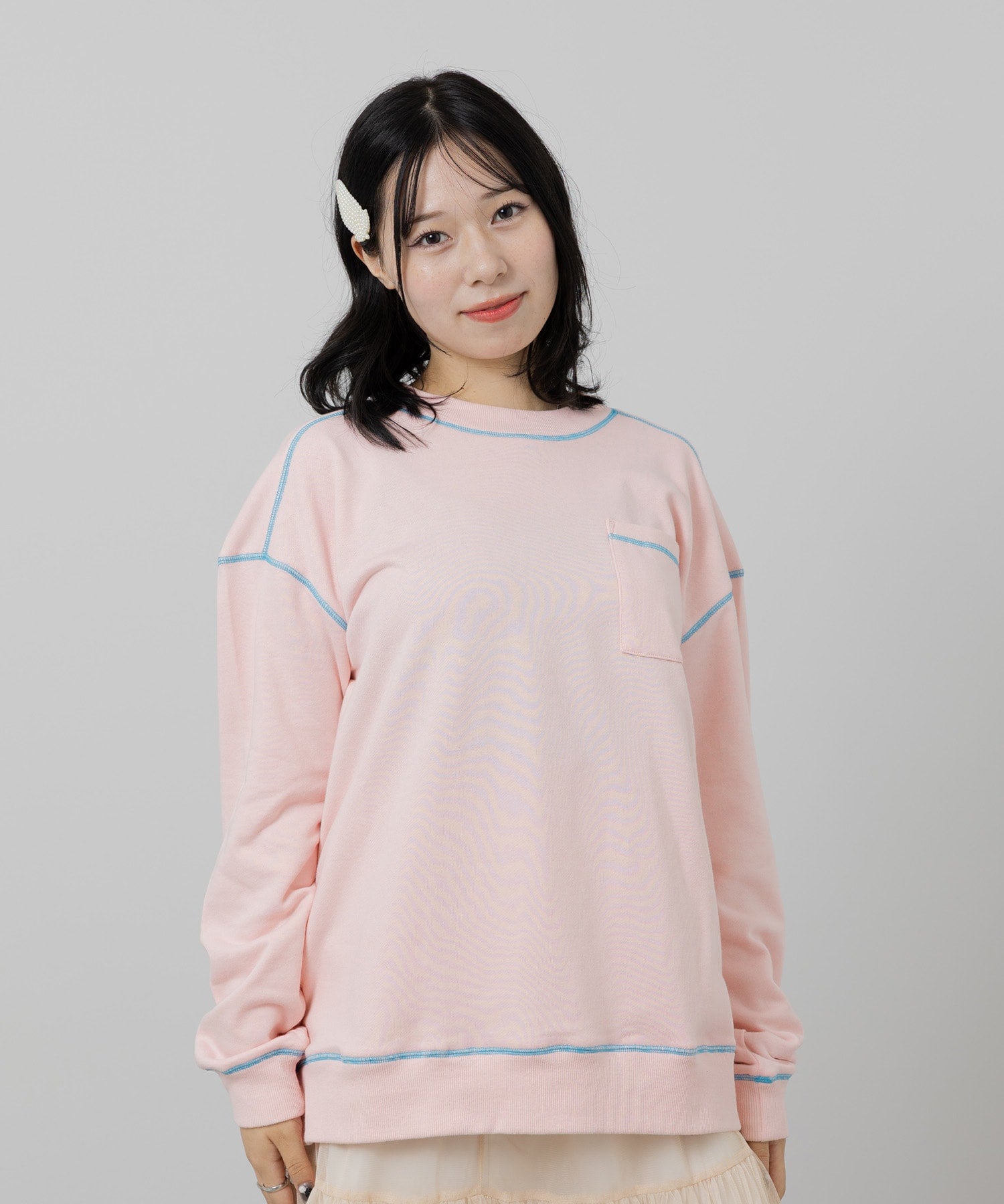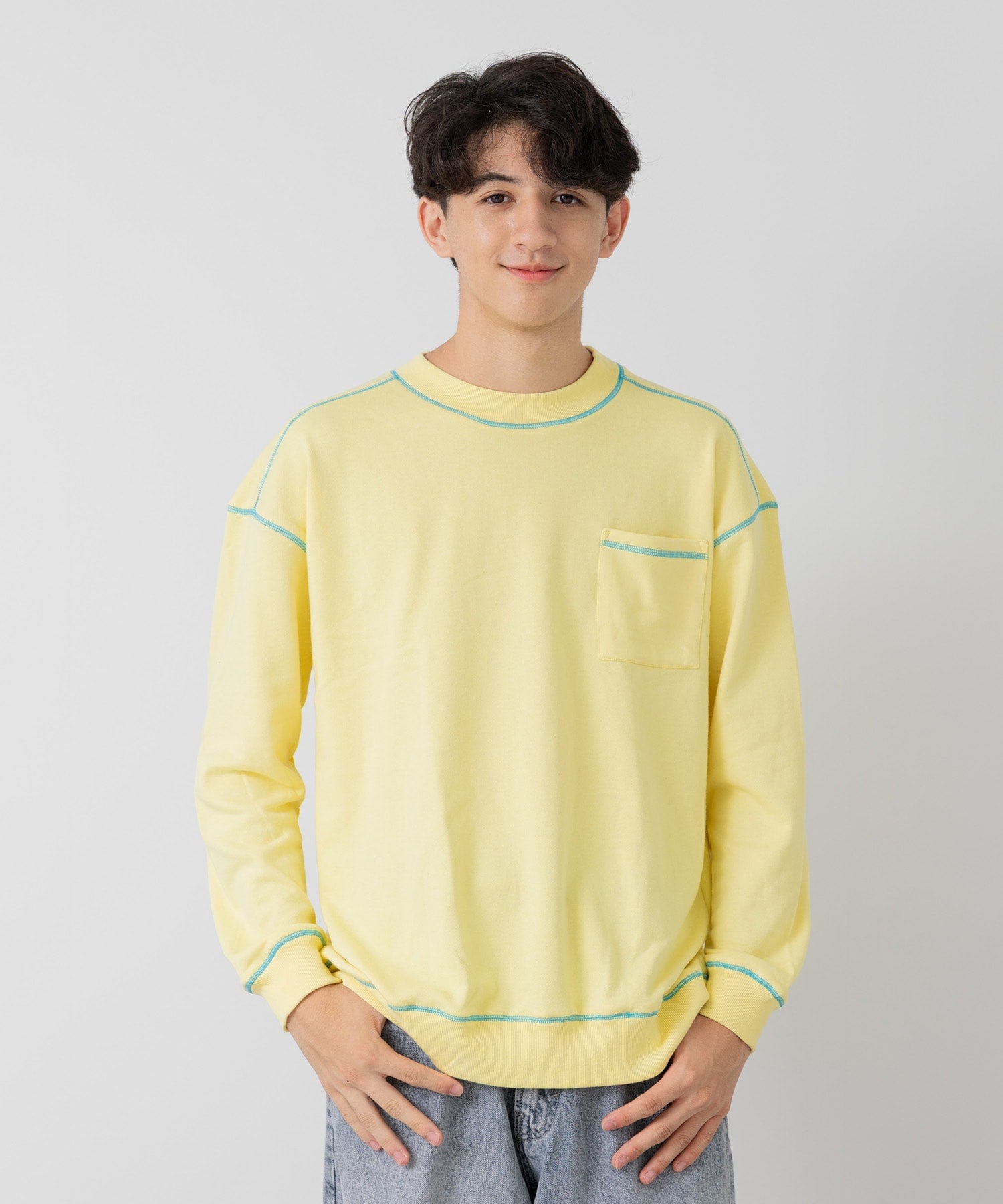 JAM&LINKの定番「配色ステッチシリーズ」の裏毛トレーナー!ステッチがほどよいアクセントになり、着るだけでシンプルなのにひとクセあるオシャレなコーデに仕上がります。ちょうどよい厚さの生地感で、秋口~春先まで長く着まわせるよ。