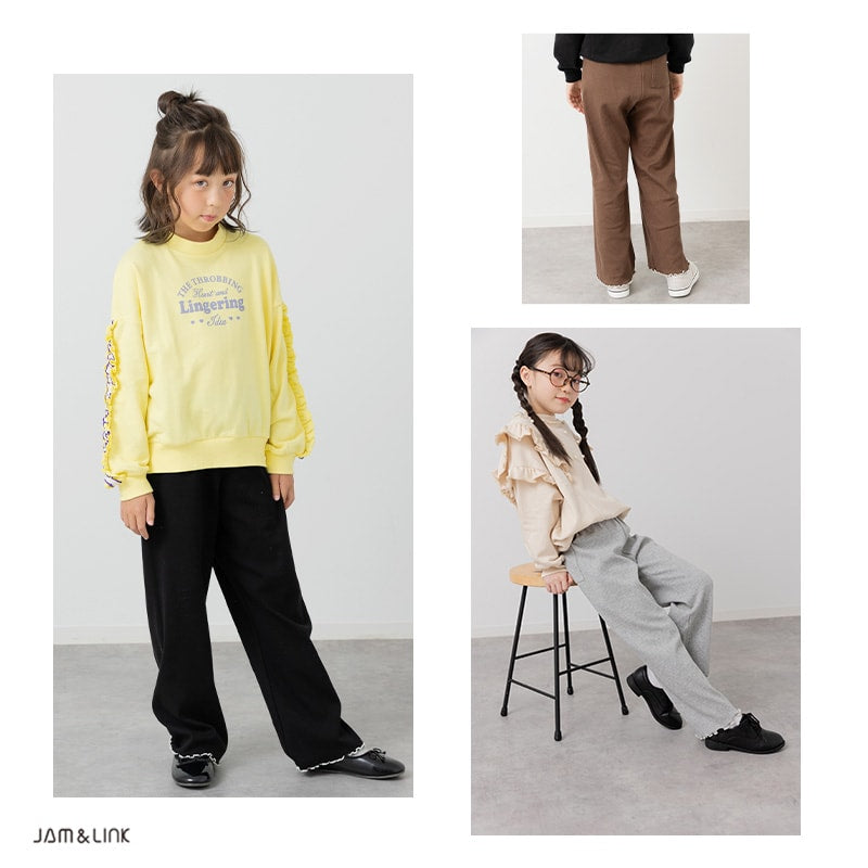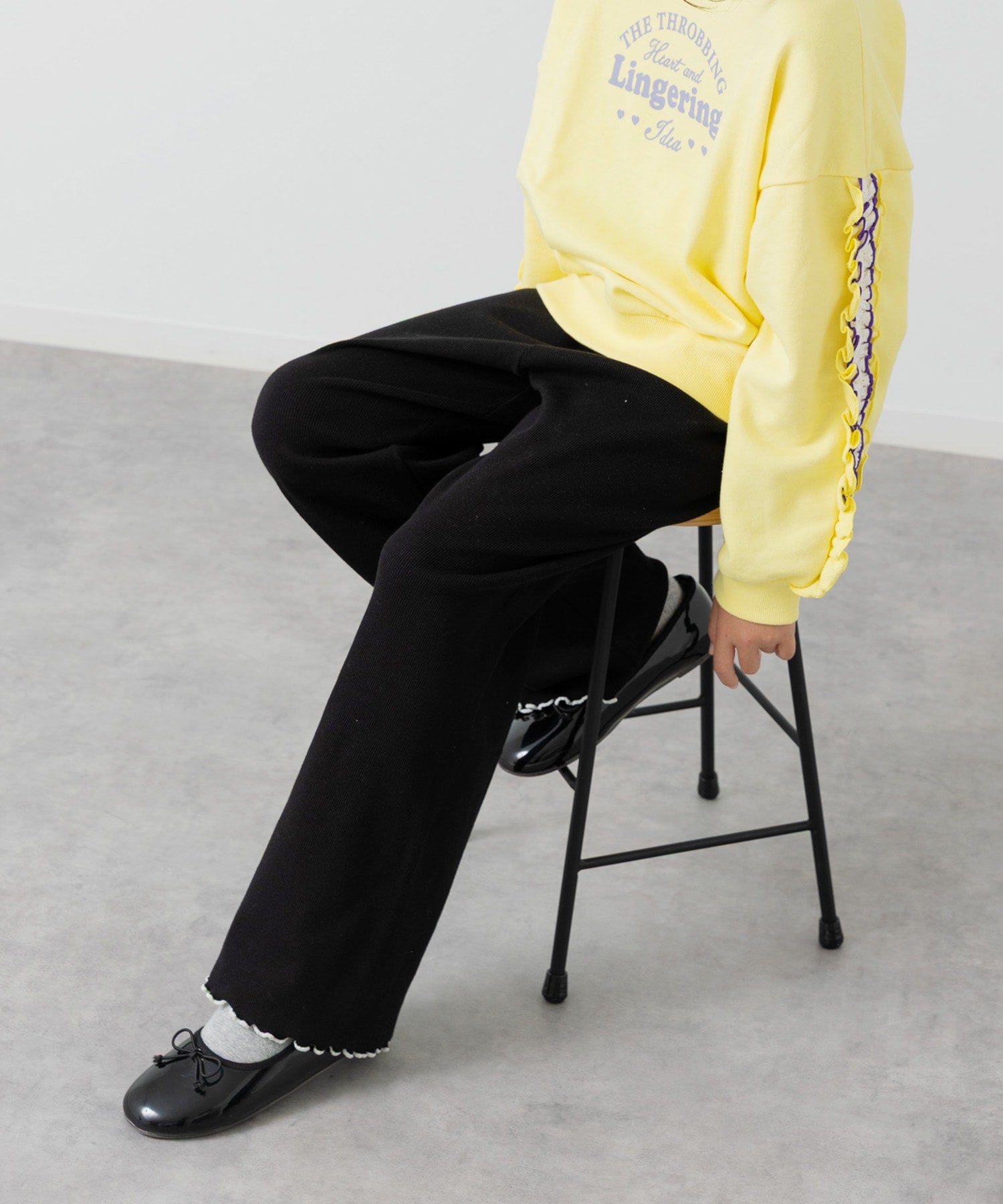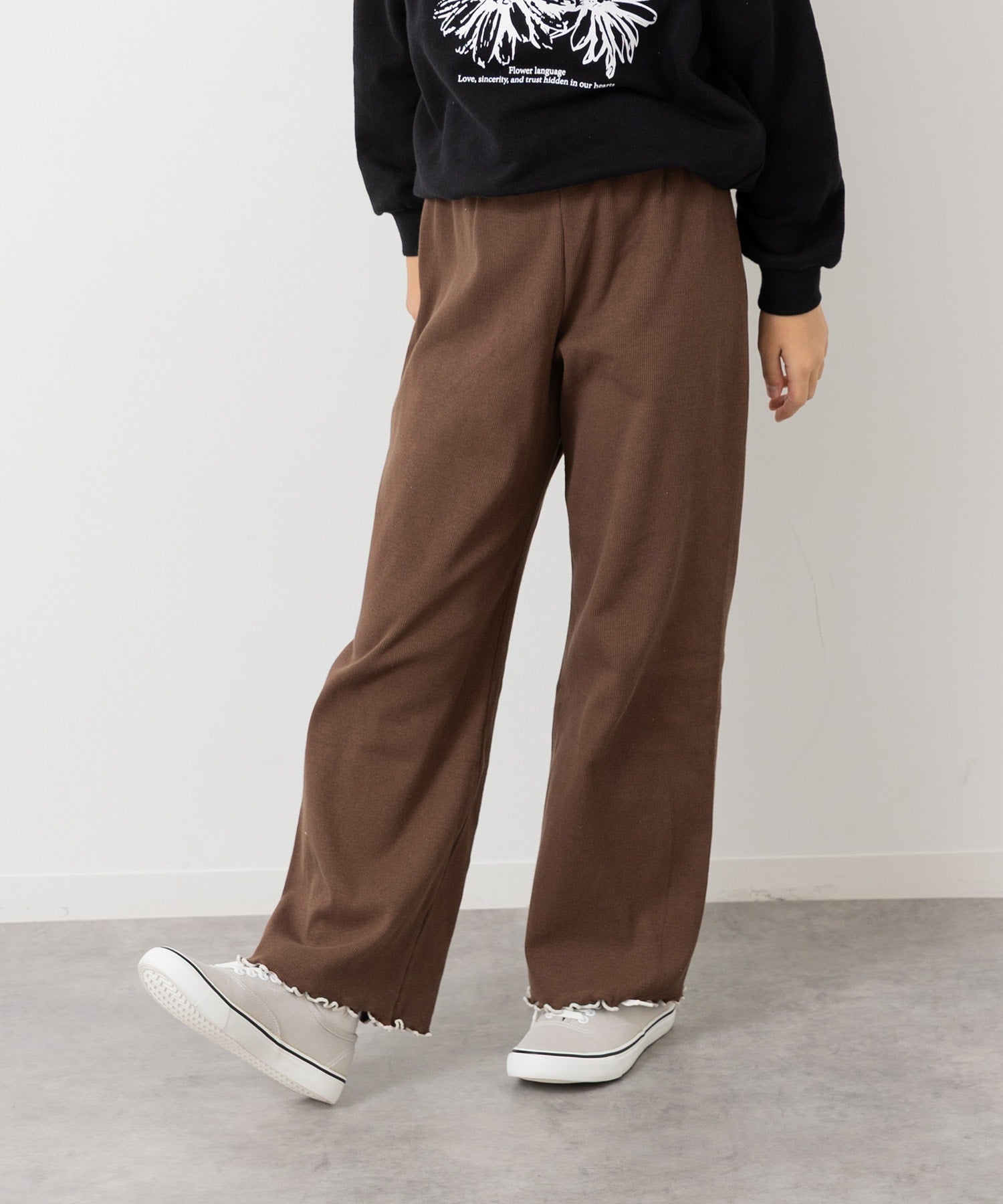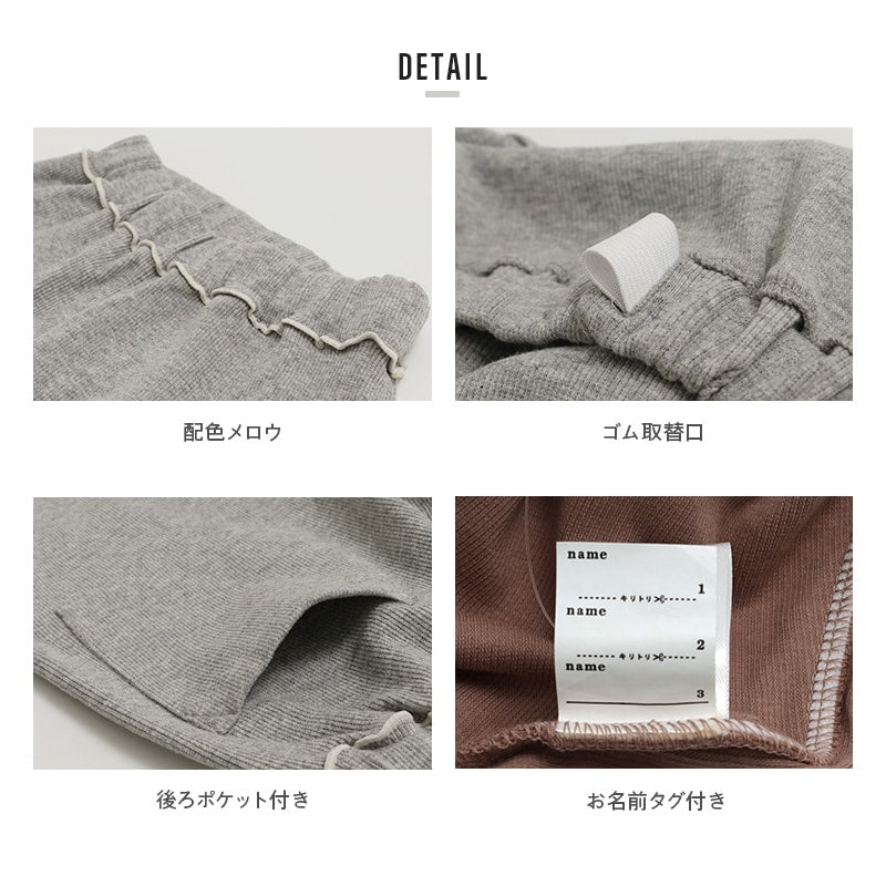 伸縮性バッチリの柔らかくて快適なリブのワイドパンツ。裾の配色メロウがデザインポイント!後ろには便利な片側ポケット付きで、シンプルな中にさりげないアクセントをプラス。リラックスとアクティブを兼ね備えたパンツです。